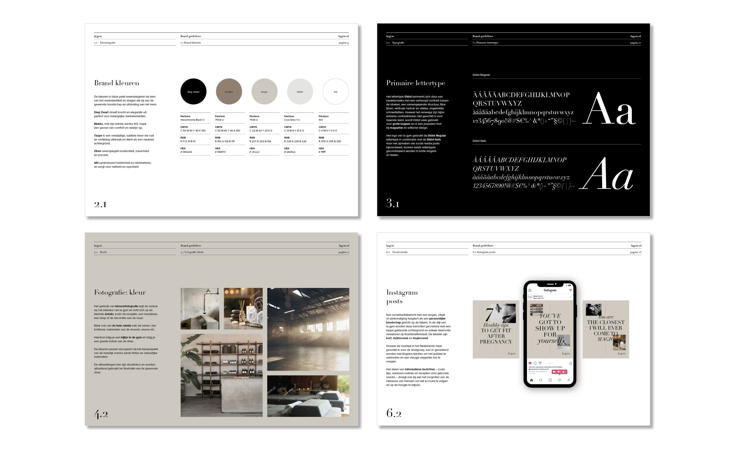 De visuele identiteit combineert tijdloze elegantie met een modern tintje, waarbij het klassieke Bodoni-lettertype wordt gebruikt om een onderscheidende uitstraling te creëren.